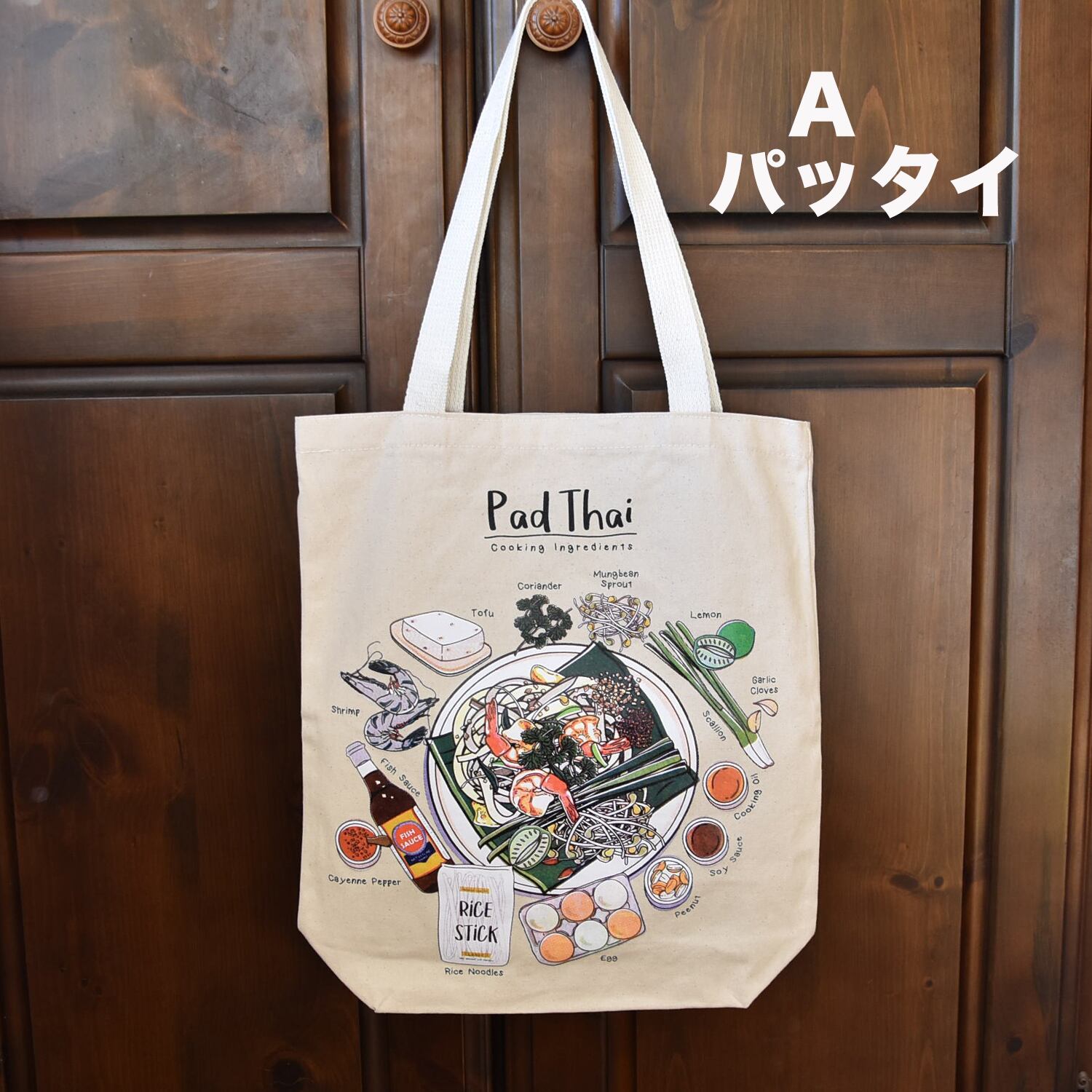 タイ トートバッグ ① タイフード 約34×39㎝ マチ付き
