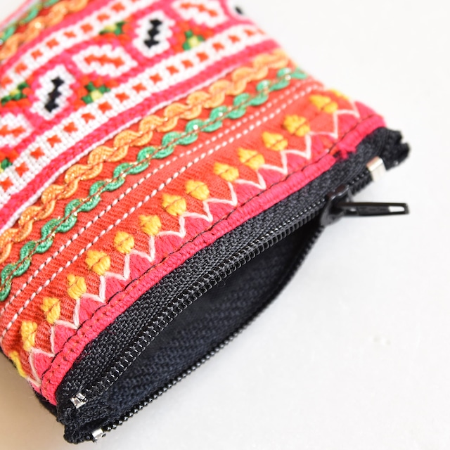 タイ モン族刺繍 カラフル コインポーチ タテ 約8.5cm × ヨコ 8.5cm