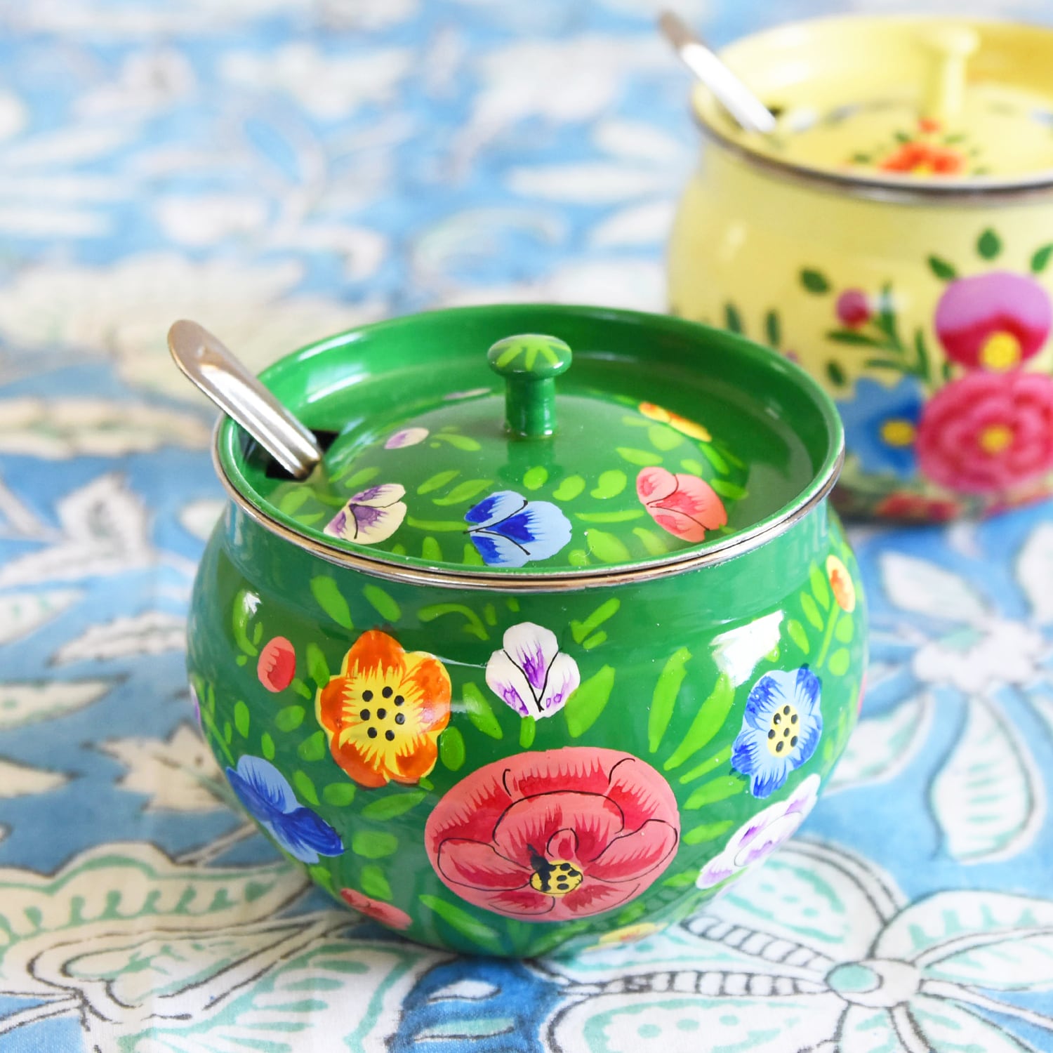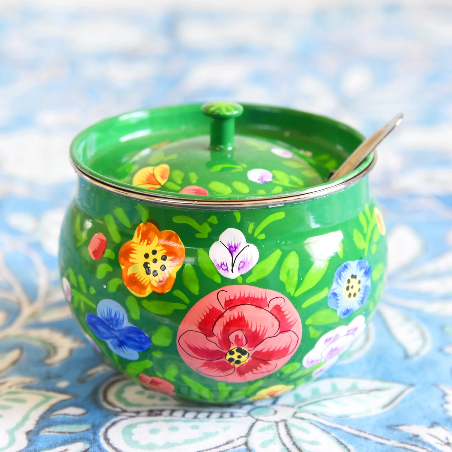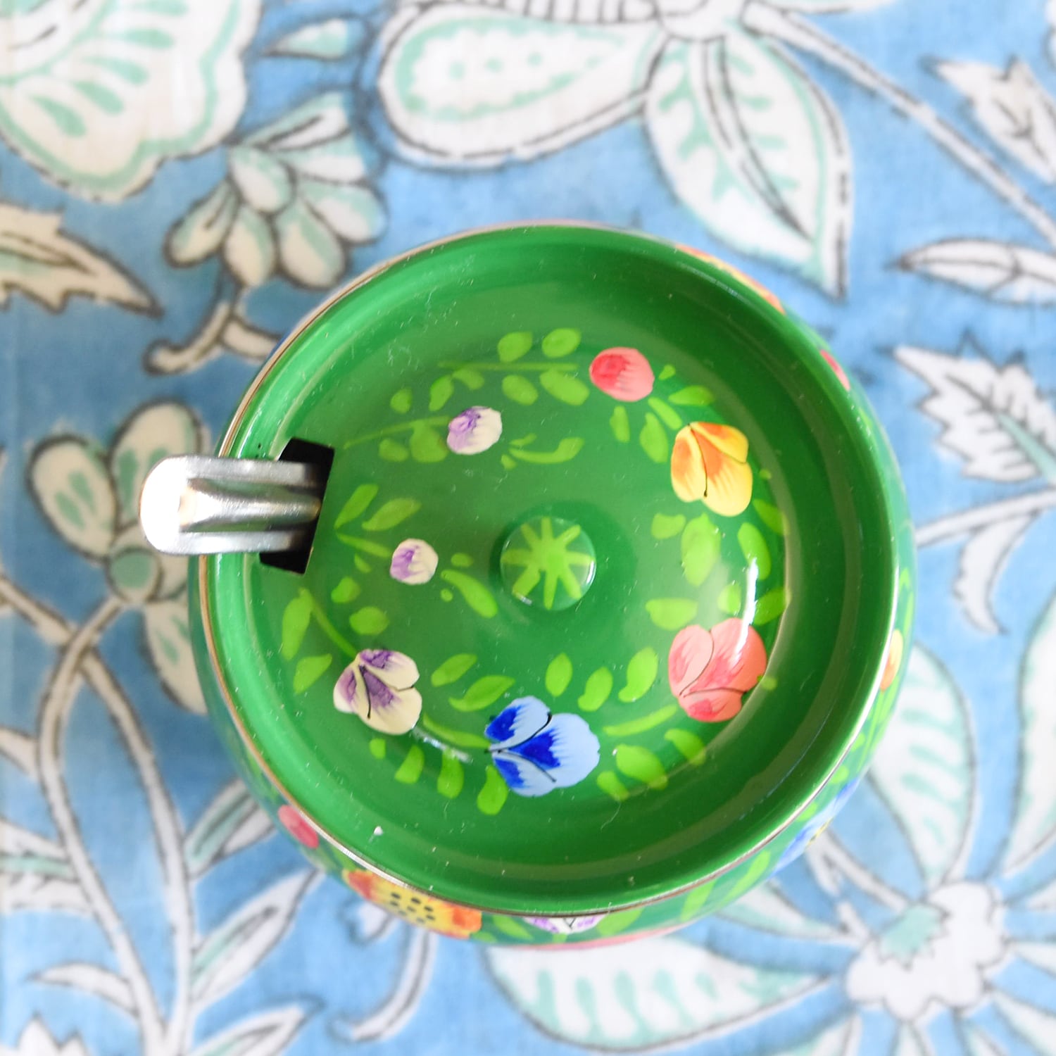 ハンドペイント ステンレス シュガーポット 濃い緑 ② 花