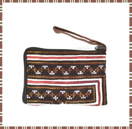 タイ モン族 L字模様 ミニポーチ ブラウングリーン
