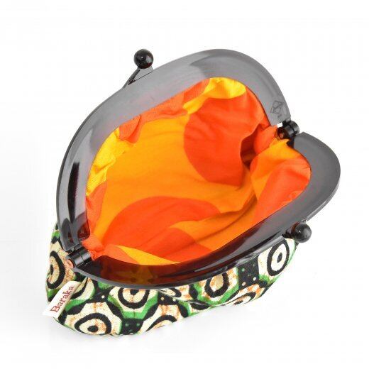 東アフリカの生活布・キテンゲで作られたカラフルな、がま口ポーチ。