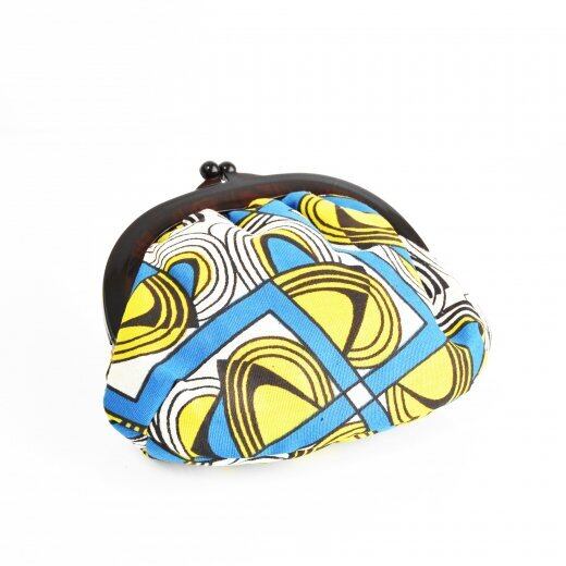 アフリカ布キテンゲ がま口ポーチ B ブルーイエロー