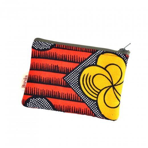 アフリカのカラフルな色と模様で人気のキテンゲ布のポーチ。