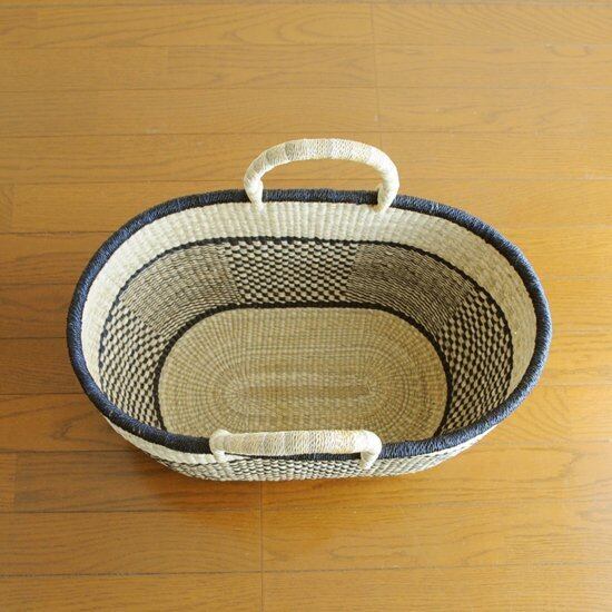 アフリカのボルガ地方特産の手作り楕円バスケット。