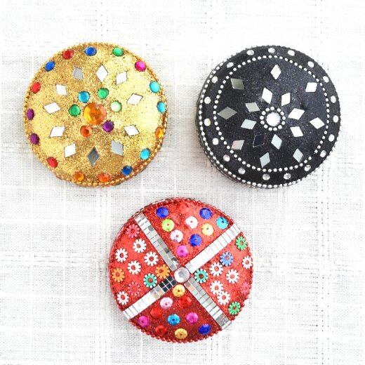インド ミラーワーク キラキラ小物入れ ラウンド