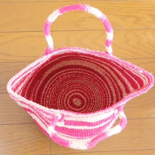 ケニア サイザルバッグ共手9インチ ゼブラ タイダイ ナチュラルxフシア(赤紫)