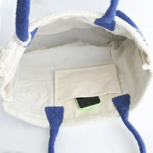 コットン100パーセントの手織り生地の質感とタッセルがかわいいネイティブシリーズ しっかりとした素材のトートバッグです。A4サイズの雑誌も楽々入ります。 スマホや鍵入れに便利な内ポケット付き 幅 約43c×高さ 33cm × 奥行 11cm 持ち手 約20㎝ インド製