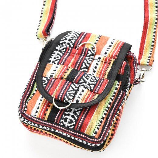 ネパール伝統織りのゲリコットンで作られたハンドメイドのショルダーポシェットです。