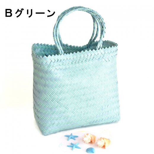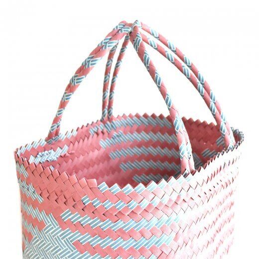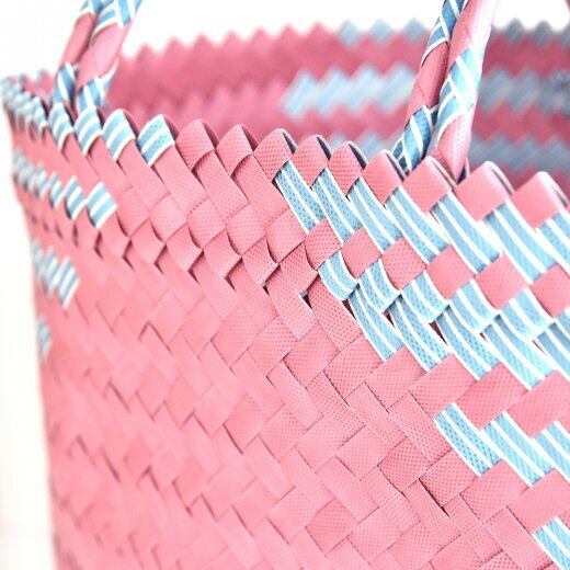 ポップな色合いで人気のバリ島のパサールバッグ。 プラスチックバンドを編み合わせて作られた軽くて丈夫なバッグです。 持ち手は持ちやすく。痛くなりにくい2本ハンドル。 2ℓのペットボトルを3本入れても余裕の大容量と水濡れや汚れに強く 街歩きから夏のビーチやキャンプでも大活躍♪ バリ製 タテ 約32㎝× ヨコ40㎝× マチ 約 16㎝
