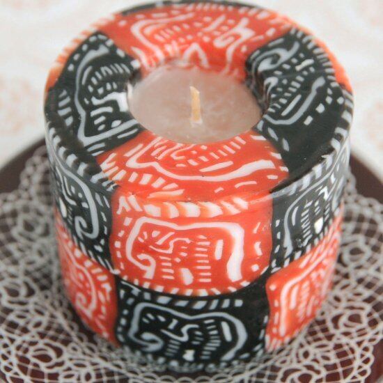 エレファント柄のどっしりしたピラー型キャンドル。