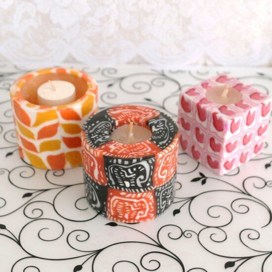 中の蝋が溶けだすとキャンドルの炎に映し出された模様が透けて見え、