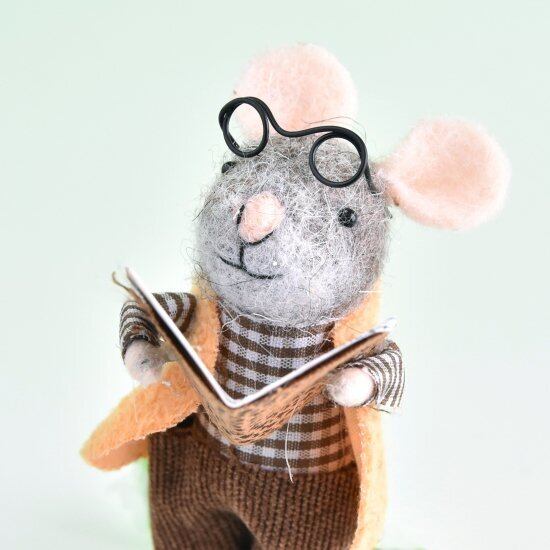 まんまるメガネとベストがお似合いの読書中のネズミちゃん。