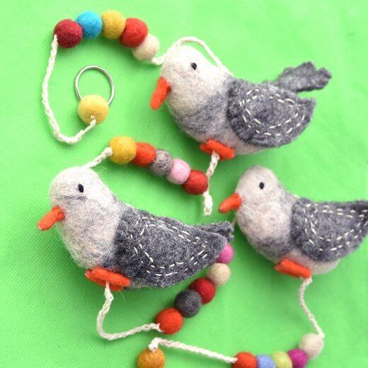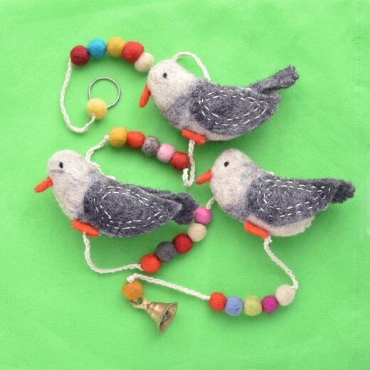 グレーとホワイトのシンプルな鳥さんとカラフルなまんまるボールの紐が上手くマッチング。