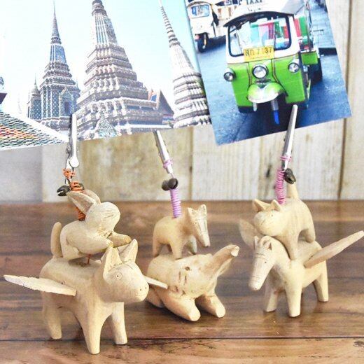 タイ ハンドメイド 木彫り アニマル カードホルダー(フォトクリップ)