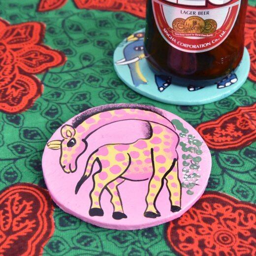 アフリカアート ティンガティンガ・コースター キリン ピンク B