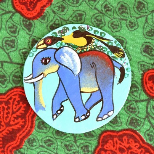 アフリカ、タンザニアの代表絵画ティンガティンガアートのコースター。