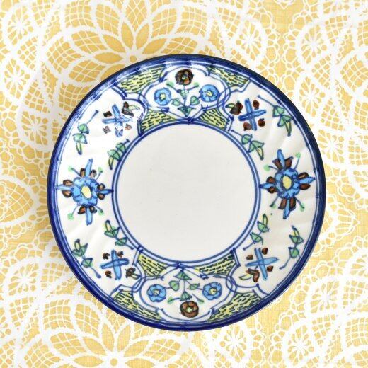 陶器の街ヤズドで作られたフラットプレート。 花柄の絵付けは職人さんの手描きで古代画のような印象でとてもかわいいです。 サンドイッチや、デザートにぴったりサイズ 食事タイムを楽しめるおススメの一品です♪ 陶器 直径 約 18cm×厚さ 2㎝