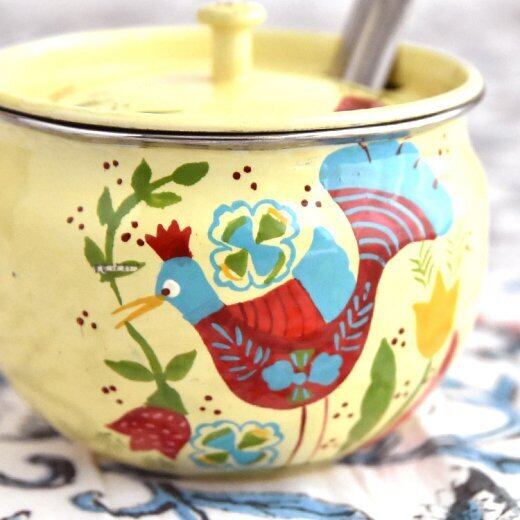 インド ハンドペイント ステンレス シュガーポット イエロー バード