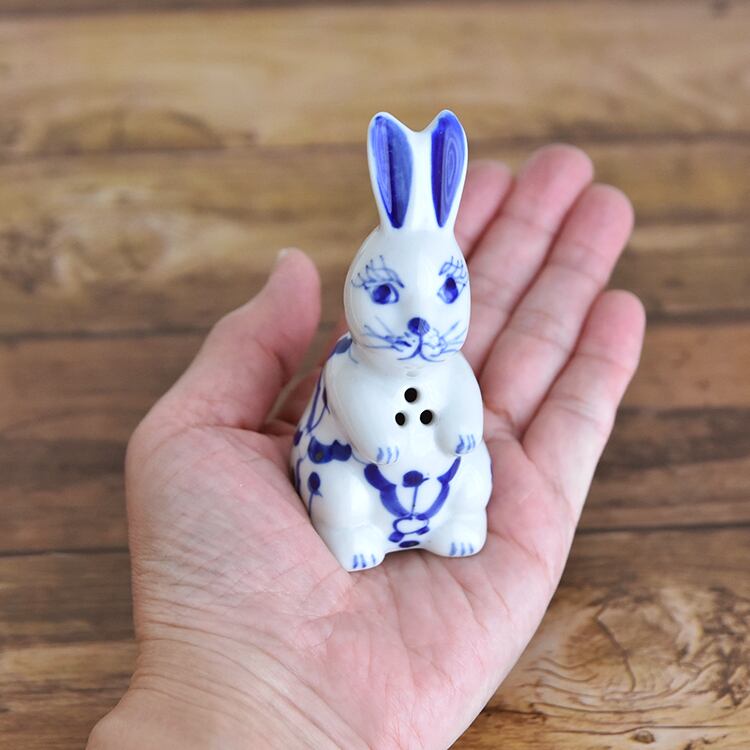 タイ 青白陶器 塩胡椒入れセット B うさぎ
