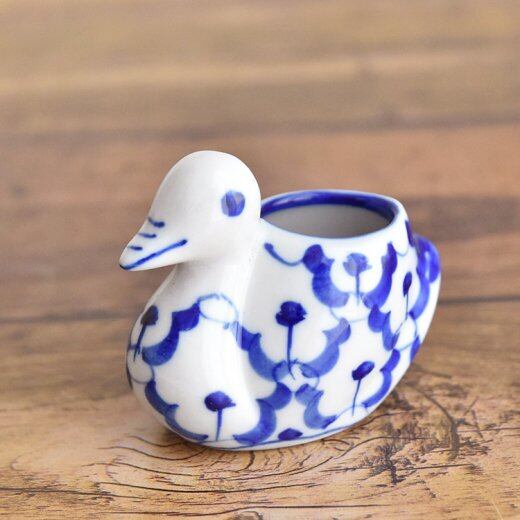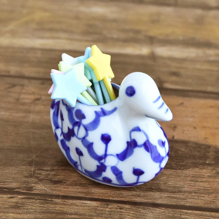 タイ 青白陶器 爪楊枝 (フルーツピック) 入れ 鳥