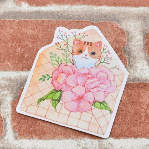 かわいい猫の絵柄のミニポストカード。 ネコちゃんのキュートな顔と綺麗な花がマッチング! メッセージカードとして送ってもデスク周りに飾っても癒されますニャン♪♪ タテ 約11.5cm×ヨコ 10cm 香港で購入 ※ クリックポスト便対象商品