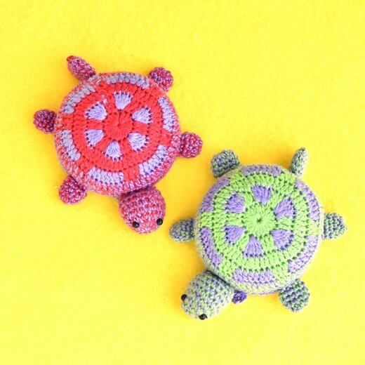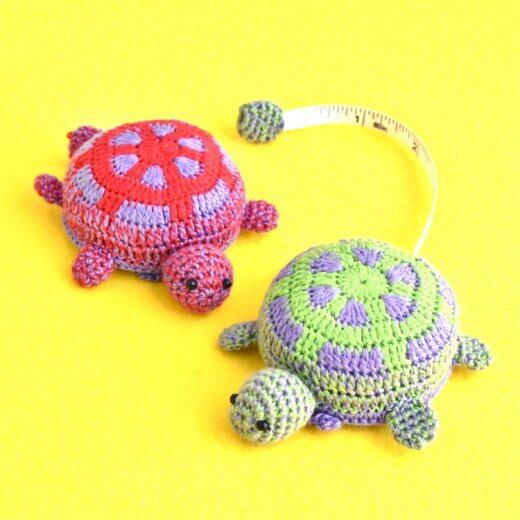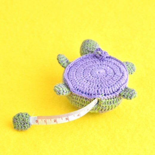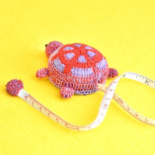 カラフルでキュートなカメさん形の編みぐるみのメジャー ( 巻き尺 ) です。