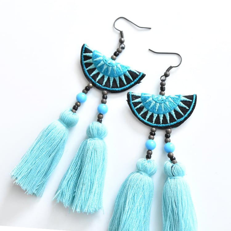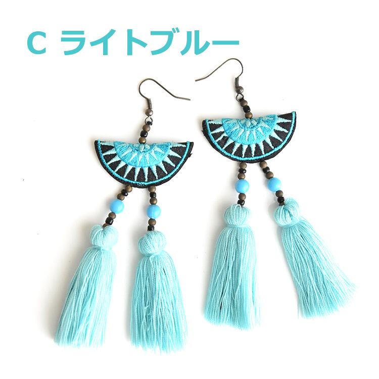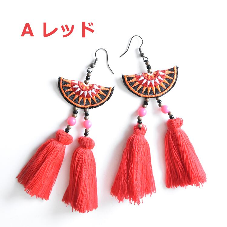 タイ モン族刺繍 半円 カラフルなタッセルピアス