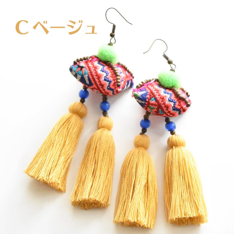 タイ モン族刺繍 立体 カラフルなタッセルピアス