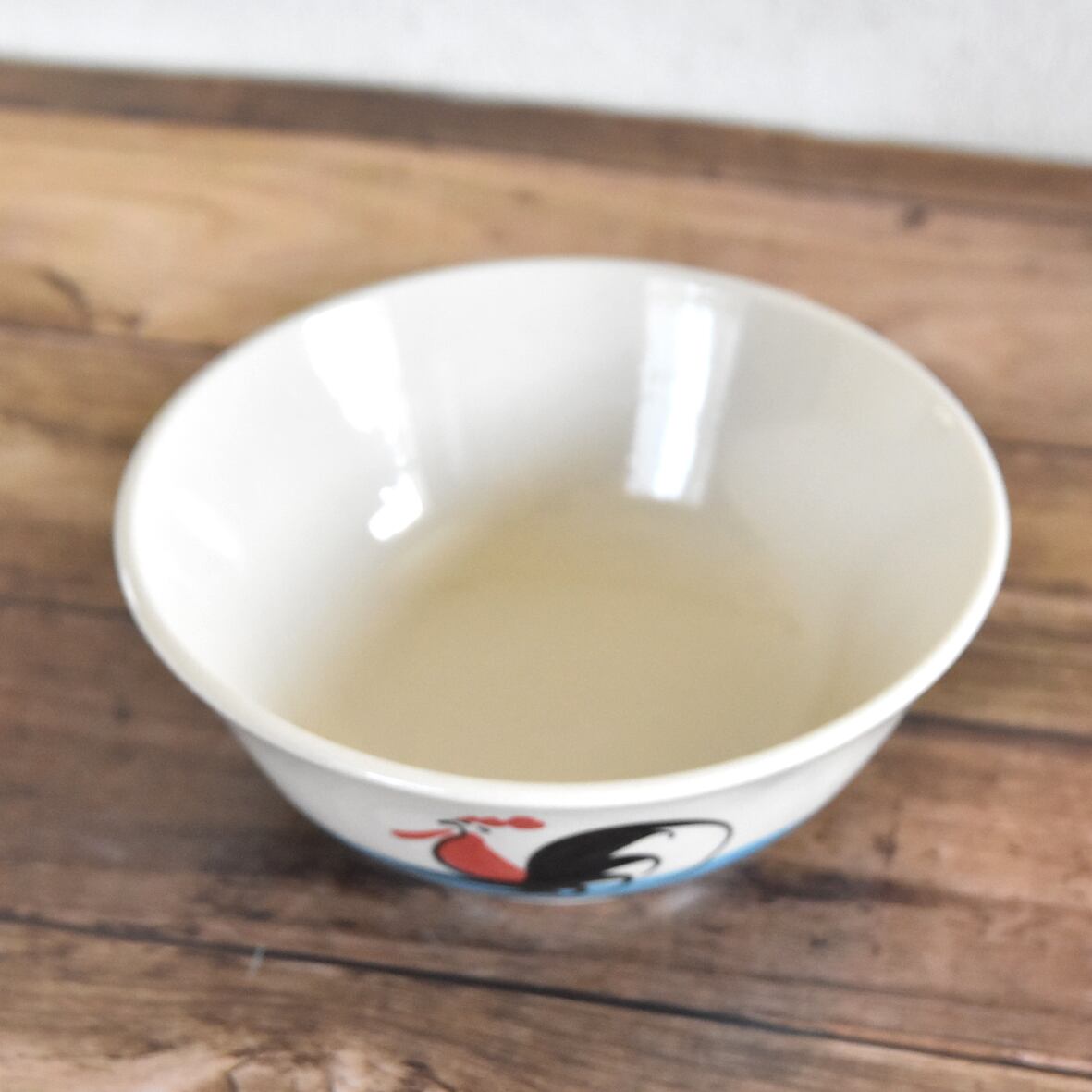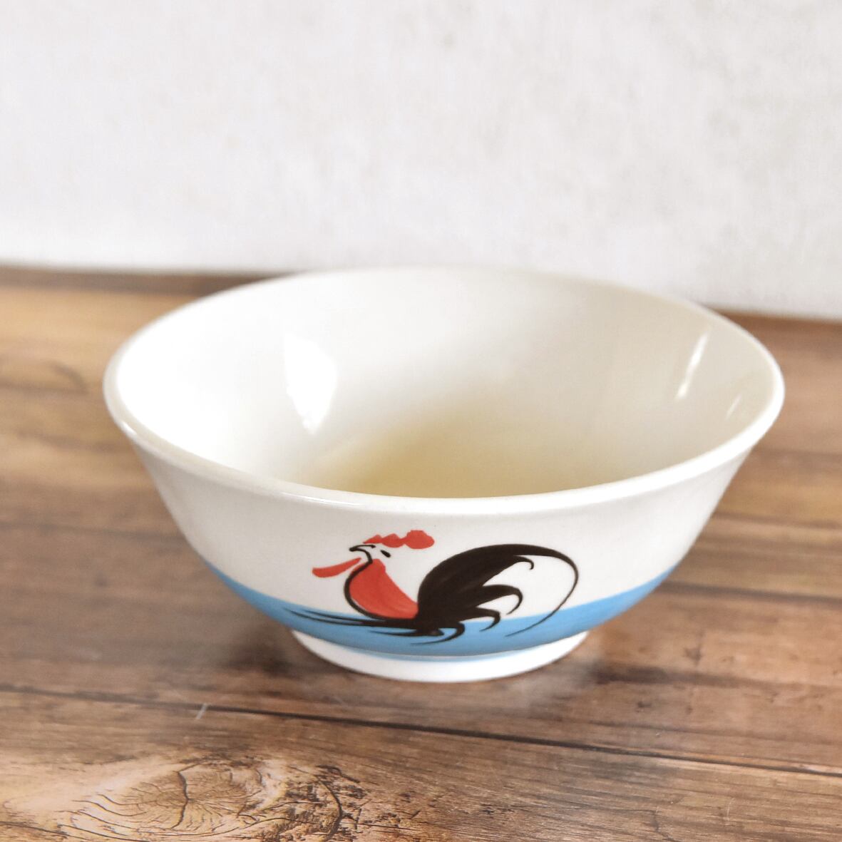 タイ ランパーン陶器 ニワトリ柄 青のライン付き ボウル (ミニ丼ぶり)16cm