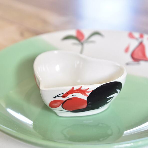 タイ ランパーン陶器 ニワトリ食器 ハート型 おかず小鉢(薬味皿) 約 8cm× 3.5cm