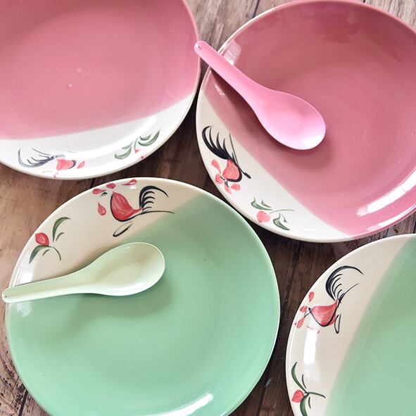 タイの屋台や食堂でお馴染み、ランパーン陶器のニワトリ柄皿。