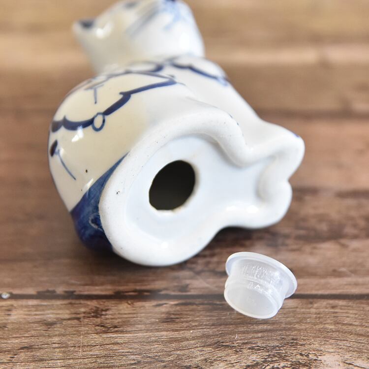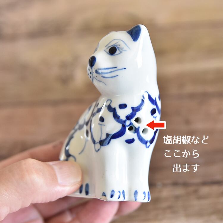 タイ 青白陶器 塩胡椒入れ ③ ネコ(単品) ※ 受け皿なし