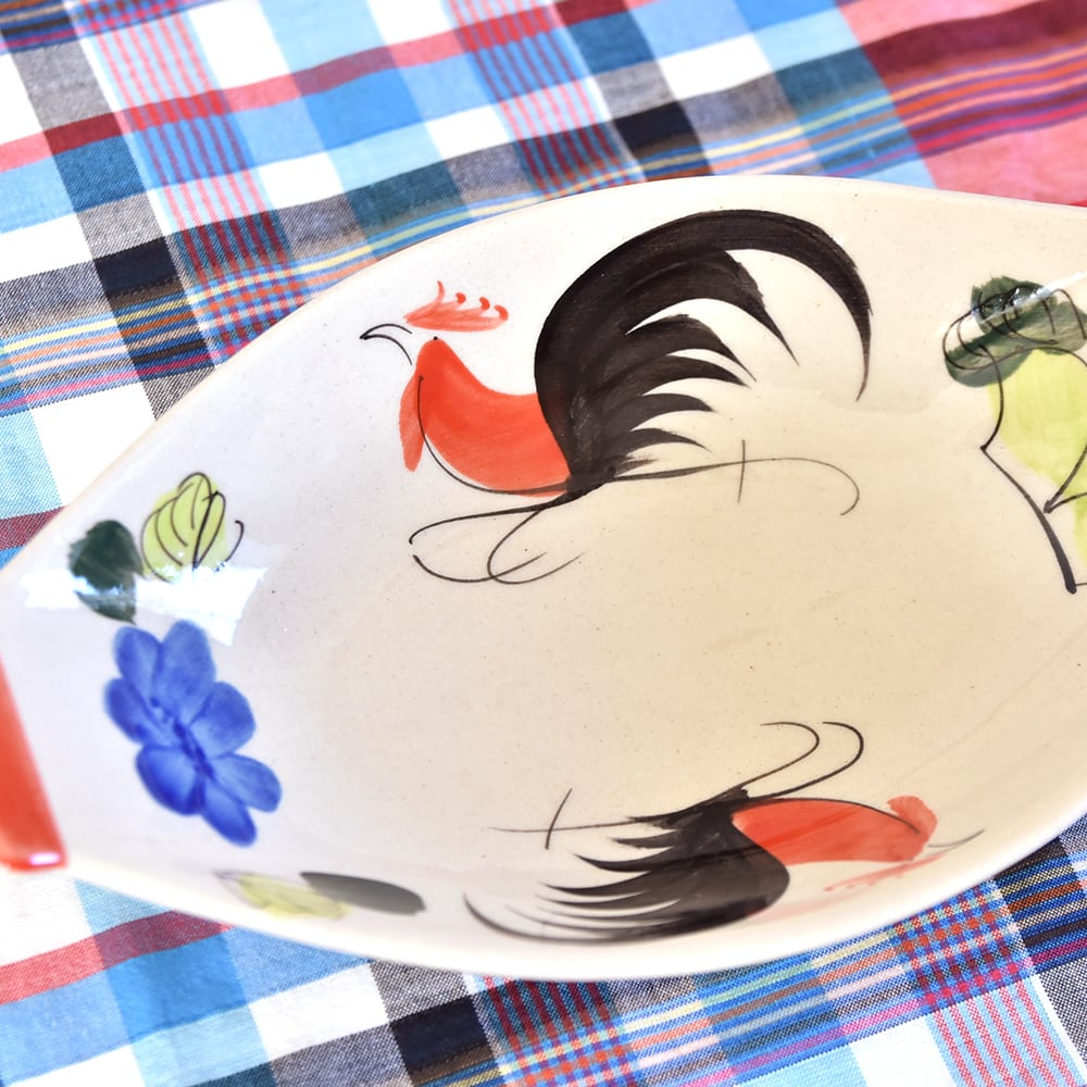 タイ ランパーン陶器 ニワトリ柄 カレー・シチュー皿 Lサイズ 27cm