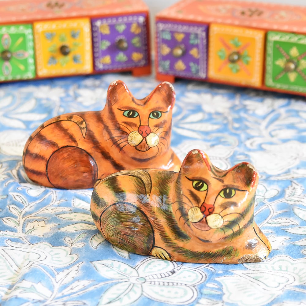 インド カシミール地方特産のペーマーマッシュ、ネコの置物です